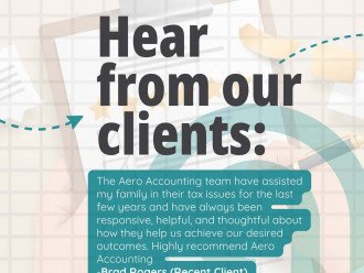 "I never thought filing a tax return from aero accounting was so simple, fast and reasonable. The experience was exceptional. I will return again next year!" - Erique